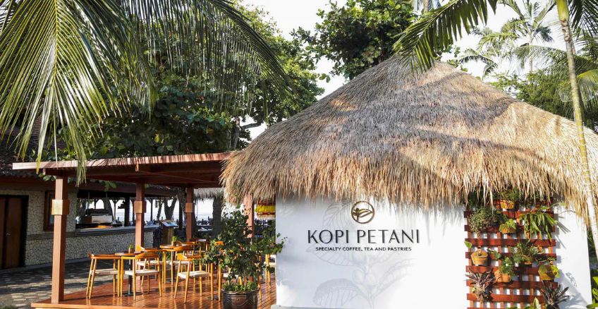 Kopi Petani is a contemporary, open-air coffee lounge by the beach with a little bamboo hut and seating for 20 people. Kopi Petani offers a choice of teas and desserts along with freshly brewed coffee using coffee beans handpicked by local farmers in Kintamani, Bali.