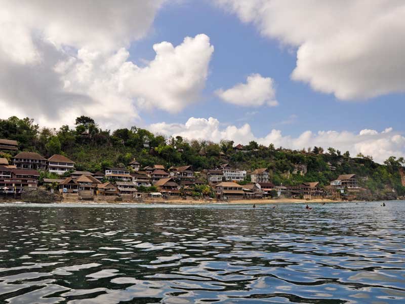 Here, along the cliff, hundreds of hotels and villas have sprung up, offering accommodation at all levels. Several long flights of steps run down the cliffs to the beach, which is lined with simple restaurants overlooking the sand and ocean. Bingin is home to a top-quality left-hand wave that breaks heavily over a shallow reef, but is also very close to other world renowned surf spots, such as Uluwatu, Padang Padang, Impossibles, Balangan, and Dreamland.